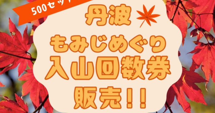 丹波市で10月20日から11月30日まで「もみじめぐり入山回数券」の販売が開始されます。この回数券は、丹波のもみじ寺12ヵ寺で使用できる300円×6枚綴りで、販売価格は1,500円です。