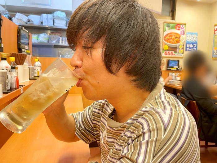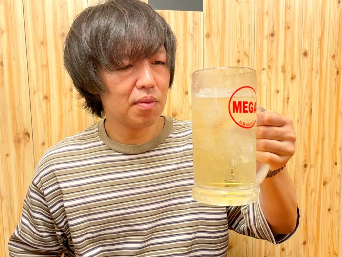 ここで道具をビールからメガハイボールに切り替える原田。「ハイボールはビールよりも太りにくいから、メガジョッキでもただちに問題はない」という謎の理論を展開していた。まさにメガクズ。