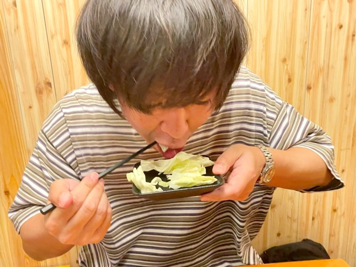 ──ちょっと何を言っているのか分からないが、そこへ一緒に頼んだ『キャベツ盛』がやって来た。あ! やっぱり野菜中心なんですね! エライ!!