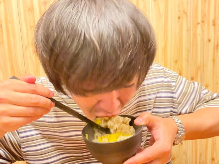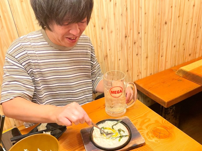 「山芋は野菜でヘルシーだから逆に痩せると思う」と言いながら『ふんわり山芋の鉄板焼』を口に運ぶ姿は、さながらフライドポテトを野菜と認識するアメリカ人のようだ。