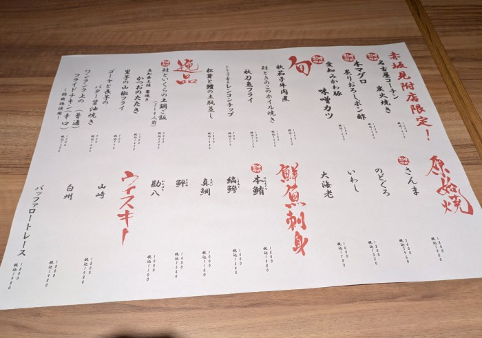 席についてまず目に入ったのは、赤坂見附店限定のメニューだ。