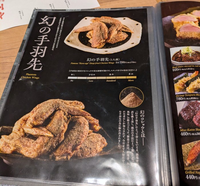 しかし看板商品の「幻の手羽先」は5本で税込770円。通常店では660円なので110円増し。この上げ幅はたしかにワンランク上と言えうよう。