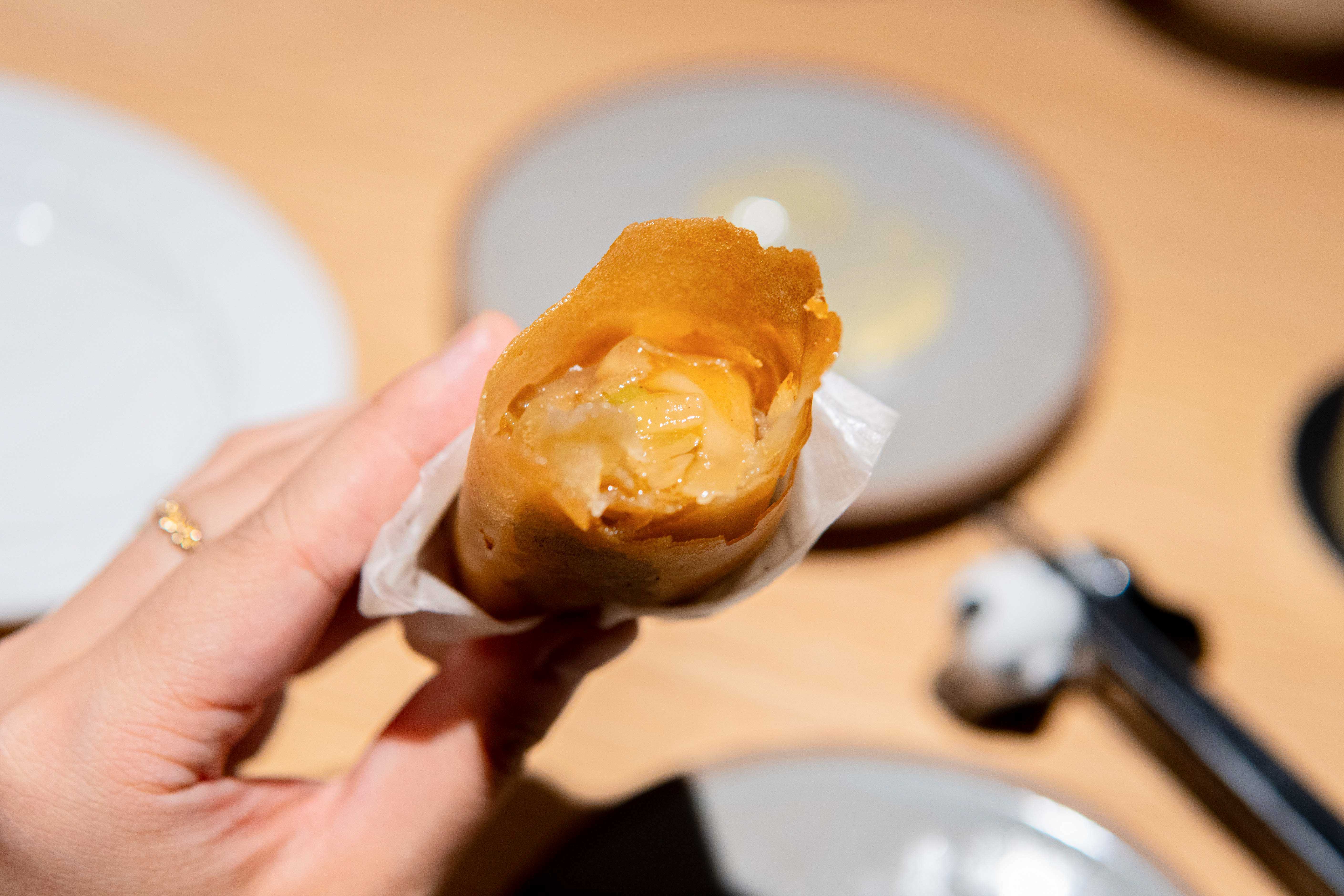 カラッと揚げられた春巻きは、香ばしい匂いに食欲がそそられます。