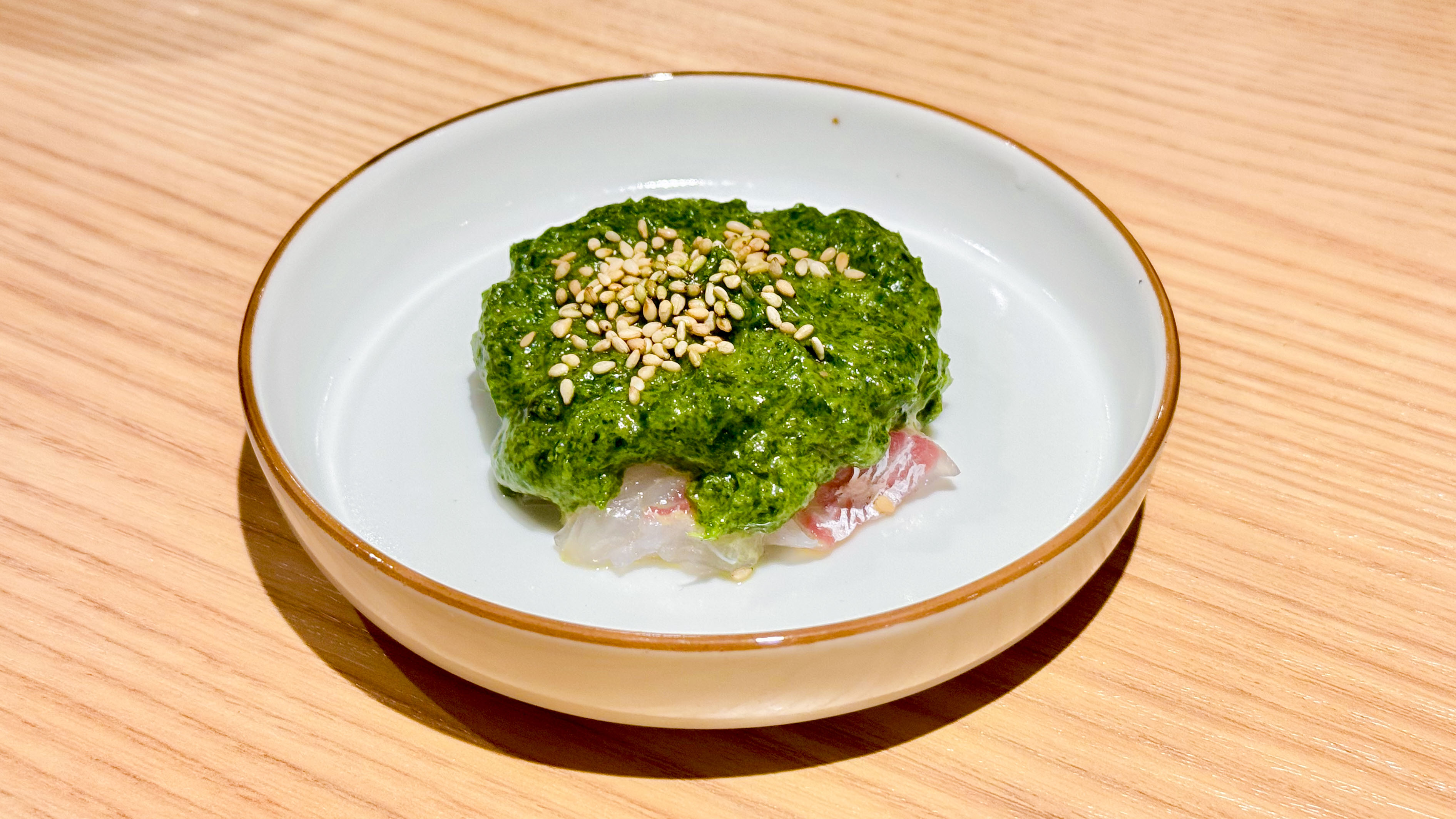 この日使用されていたのは、天然の真鯛。歯応えのある鮮度抜群の鯛が美しく盛り付けられています。