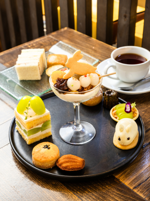 アフタヌーンティー(2ドリンク付き) 3800円 内容はほぼ毎月変わり、写真は9月のお月見のモチーフ