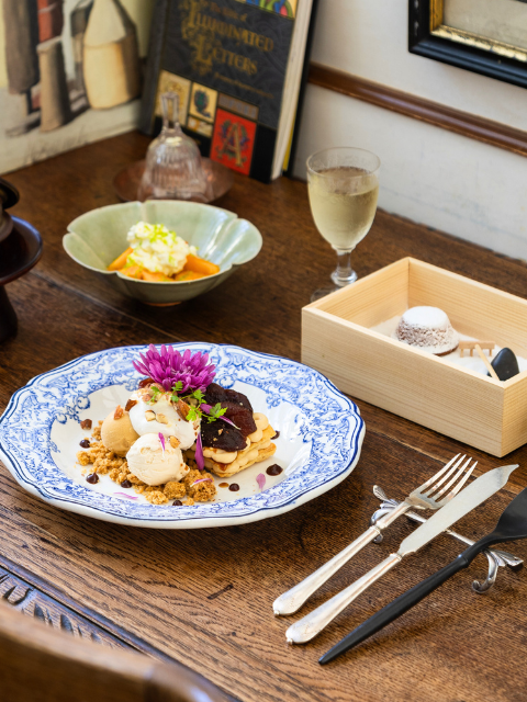 さまざまな国の要素を取り入れた店内では、メニューを本に挟むなど粋なインテリアなど楽しい仕掛けがいっぱい!上品なスイーツと心躍る店内で至福の時間を過ごしてくださいね♪