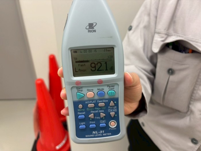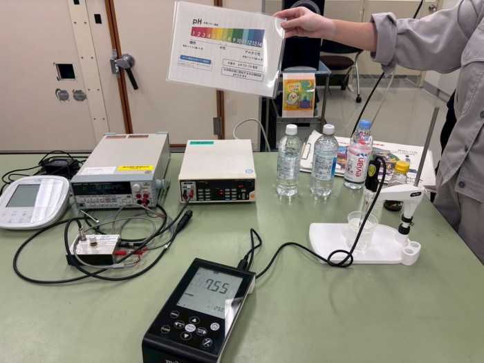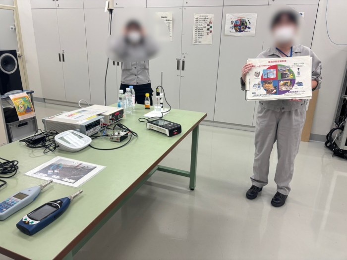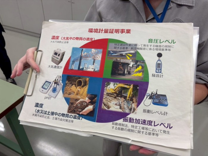 ここでは、騒音や振動の大きさ、排水の濃度の数値を計る機器がちゃんと動いているかどうかを検査している。