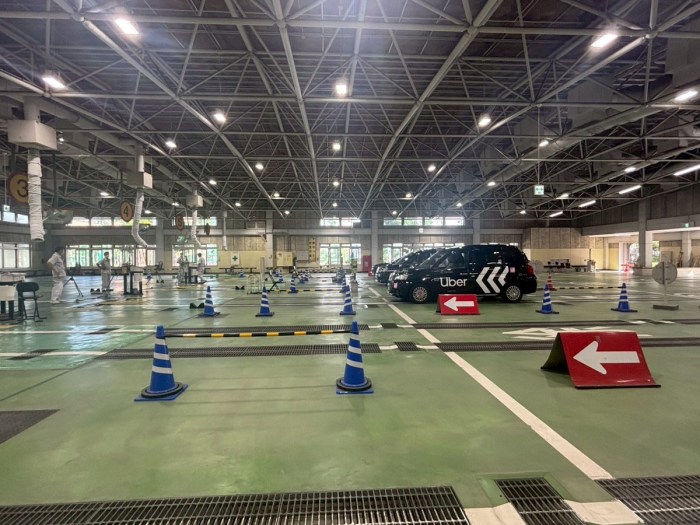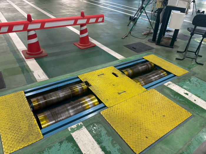 タクシーの運賃メーターは、基本的に年に1回、こうした施設で検査を受ける決まりがあるそうだ。車をローラーの上に乗せてタイヤを回し、距離と料金のズレを細かく確認していく。