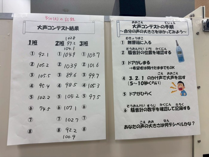 実際に中に入らせてもらい、「大声コンテスト」を開催させてもらうことに。
