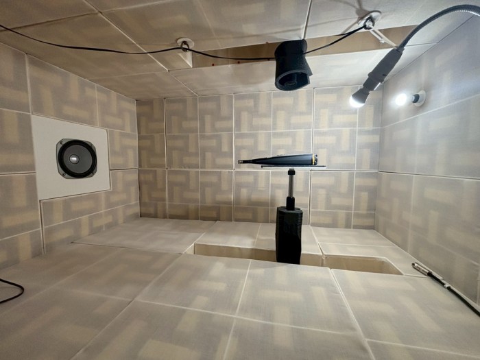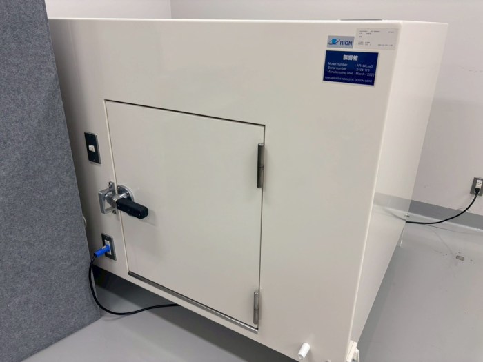 騒音計を検査するための特別な箱で、内部は完全無音。