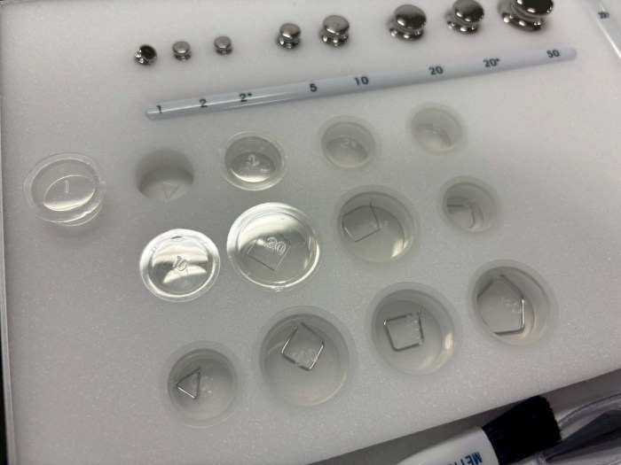 しかも、ただの分銅じゃない。めちゃくちゃ小さい。担当の方いわく「これで1ミリグラムです」とのこと。