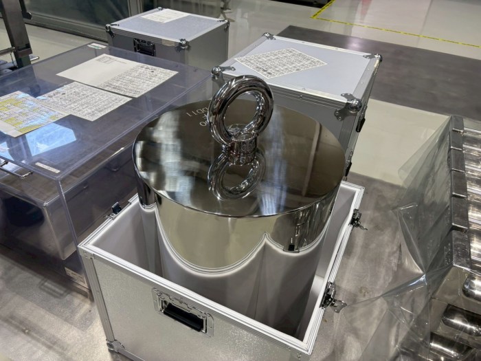 さっきは極小の分銅を見せていただいたが、こちらはなんと1トンの分銅。