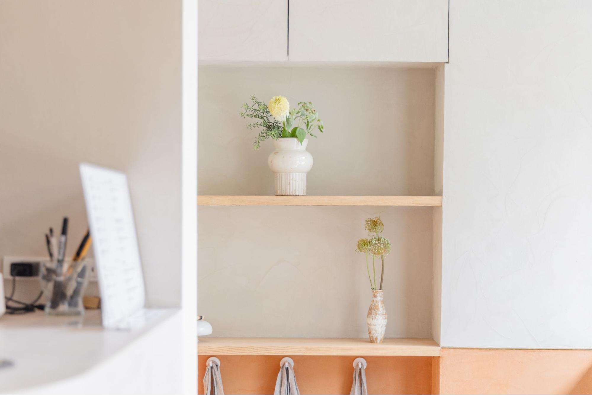 住宅街に溶け込むシンプルな外観ながらも植物とグリーンの扉が目をひく「meaningress」。大きな窓から差し込む自然光が、店内をやさしく照らしています。