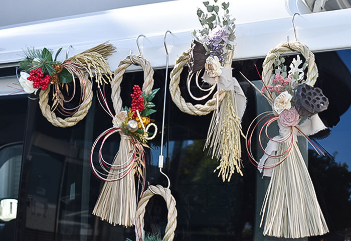 ドライフラワーのリースやお正月飾りもあります。公式ラインやインスタグラムのDMから色やイメージを伝えて、予約注文もOK!