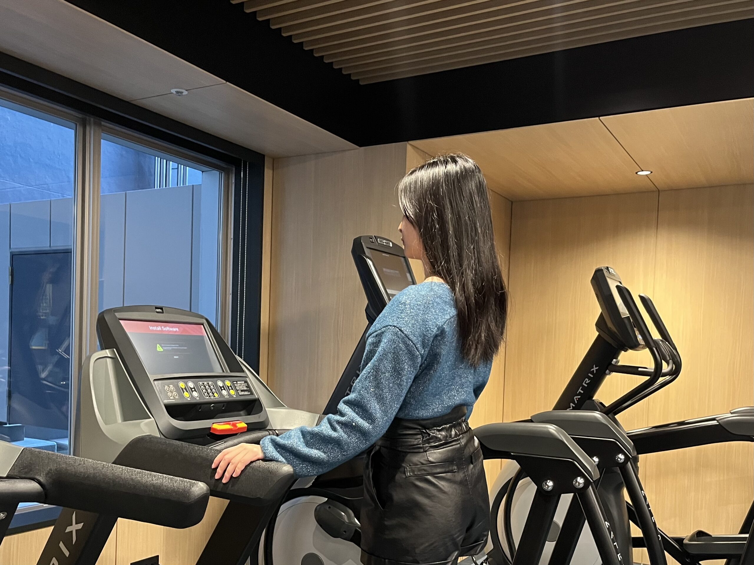 24時間営業のジム「Re:charge」には、ウェイトマシン、エクササイズバイク、有酸素運動マシンなど設備も充実しています。
