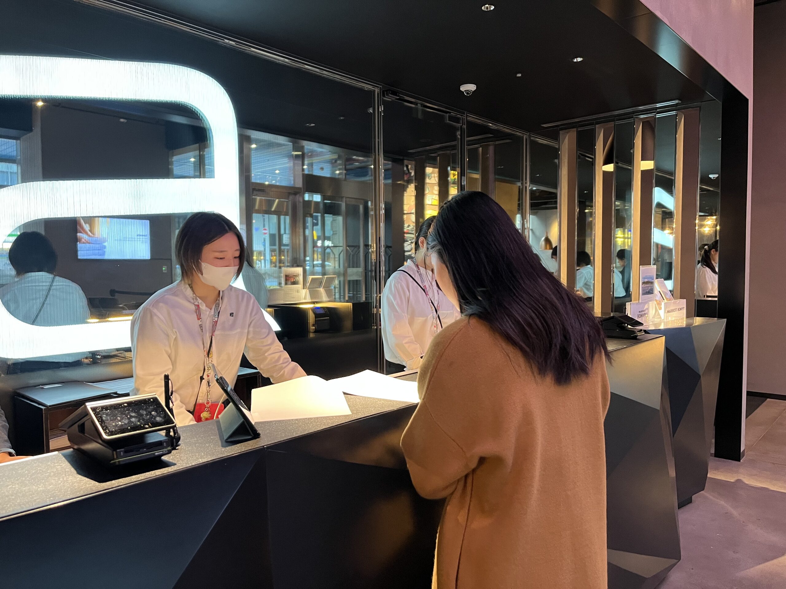 ロビーではタブレットを使った丁寧な施設説明があり、初めての滞在でも安心して過ごせそうです。
