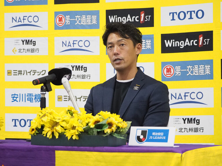 増本監督「笑顔で帰すことができなかった」。ギラヴァンツ6試合ぶり黒星も、ホーム最終戦で誓う「みんなの笑顔」
