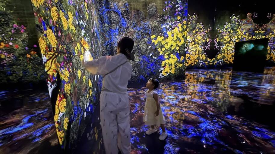 さまざまな和楽器を奏でられる、インタラクティブ体験。月が登場し、和楽器の音と共に、躍動感ある光のアートが奏でられます。