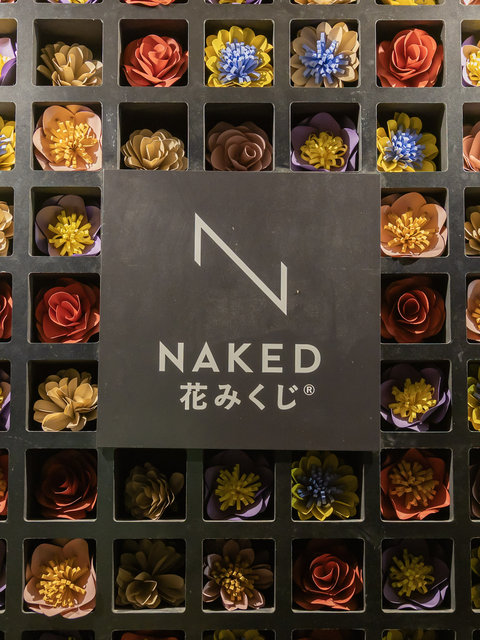 定番になった花をかたどった、NAKED花みくじ🄬。かわいいアイテムとして、持ち帰れます。2019年初春に発表して以来、人気のアイテムで、お花に癒されます。大吉が出ますようにー。