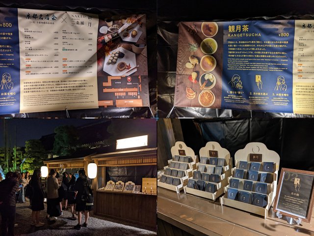 飲食の提供もあり、京都名店会とのコラボ商品のお団子とお茶のセットや、お茶の香りと、月の銘を選ぶ「観月茶」もなども魅力的で、にぎわっていました。