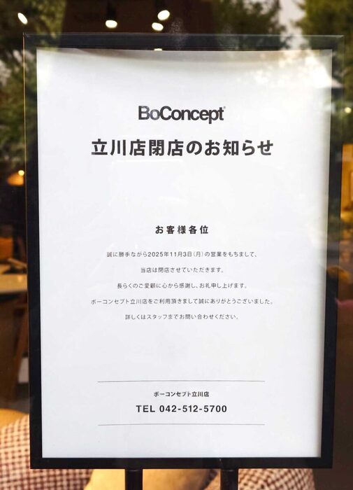 《閉店》グリーンスプリングスの家具屋『BoConcept 立川店』が11月3日(月・祝)で閉店するみたい