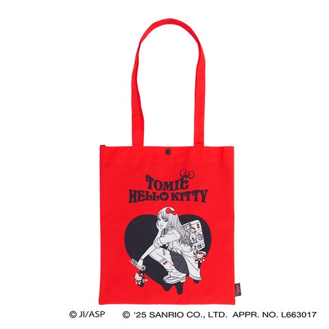 本コラボレーションは、ホラー漫画家・伊藤潤二先生のデビュー作であり代表作である『富江』と、株式会社サンリオの人気キャラクターであるハローキティが融合したものです。伊藤潤二先生によって特別に描かれた、平成ギャルを装った富江とハローキティのビジュアルは、妖しくも可愛らしい独特の魅力を放っています。賞品はダークな雰囲気とともにおしゃれなデザインが特徴で、日常使いからコレクションまで幅広い用途に対応します。