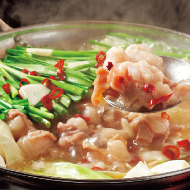 国産和牛の最高級ホルモンを使用したみそもつ鍋は、桁違いのぷりぷり食感と甘みが特徴。