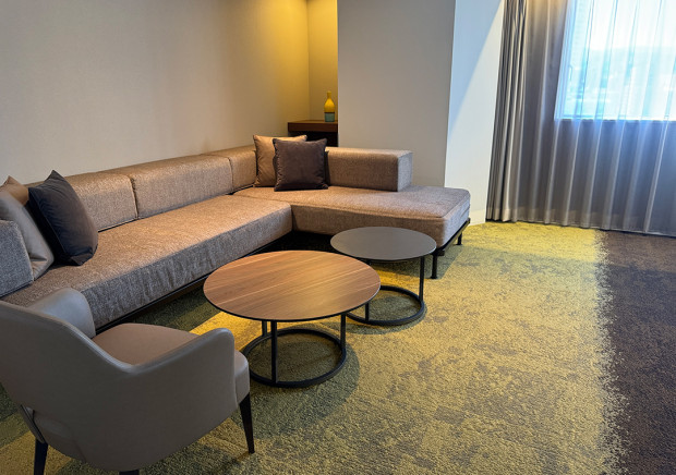 落ち着いたデザインのスイートルームは、ゆとりある間取りで居心地の良さを実感できる空間。
