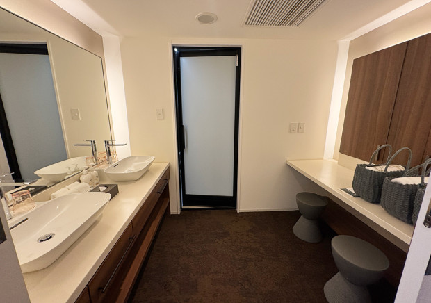 広々とした空間で心身ともにリフレッシュ。タオル、ルームウエア、ドライヤーなども揃っているので、手ぶらで気軽に利用できます。