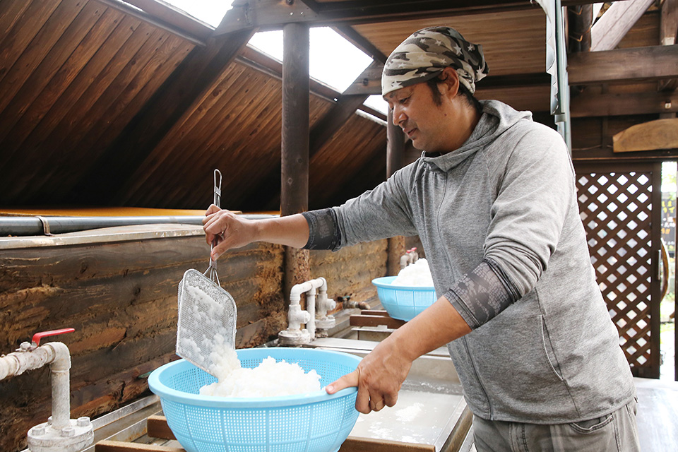 富樫さん:うちは平窯を使って海水を煮詰めているので、工房に熱がこもって真夏の作業はかなり過酷なんです。何度か脱水による全身けいれんを経験しましたが、塩を舐めることでピンチを乗り越えることができました(笑)