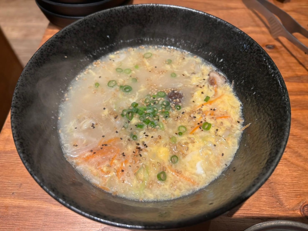 テーブルに置かれているごま油を少し垂らすと風味が増し、おすすめです。