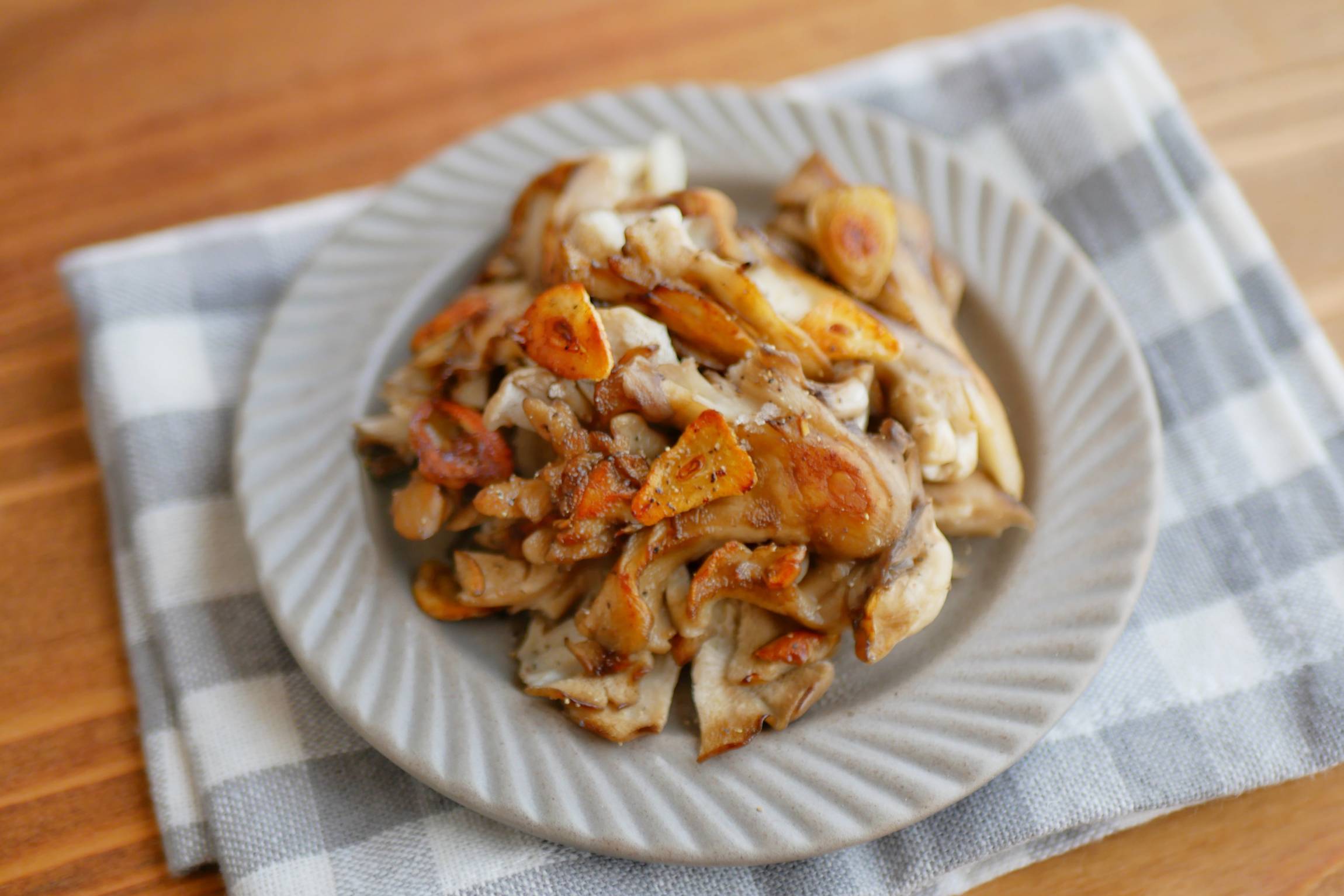 まいたけバターとガーリック風味は相性が抜群!おつまみにもおすすめです。このレシピではスライスのにんにくを使いますが、すりおろしやチューブのにんにくでも作れます。