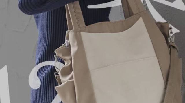 こちらのトートバッグは、比較的シンプルな無地基調。マチ幅もしっかりあるので、マイボトルや長財布、手帳など、荷物がたくさん入ります。