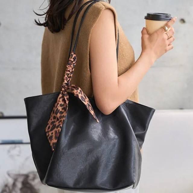 大人女子の秋コーデに映える!たくさん入るトートバッグ③スカーフ付きフェイクレザートートバッグ