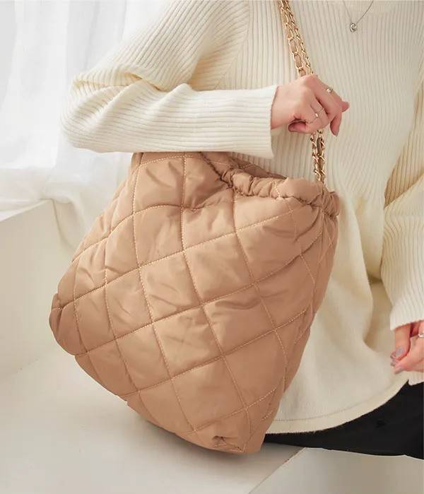 大人女子の秋コーデに映える!たくさん入るトートバッグ①ポーチ付き キルティングトートバッグ