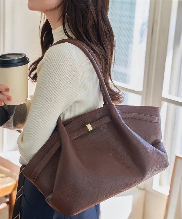 大人女子の秋コーデに映える!たくさん入るトートバッグ②デザインベルトトートバッグ