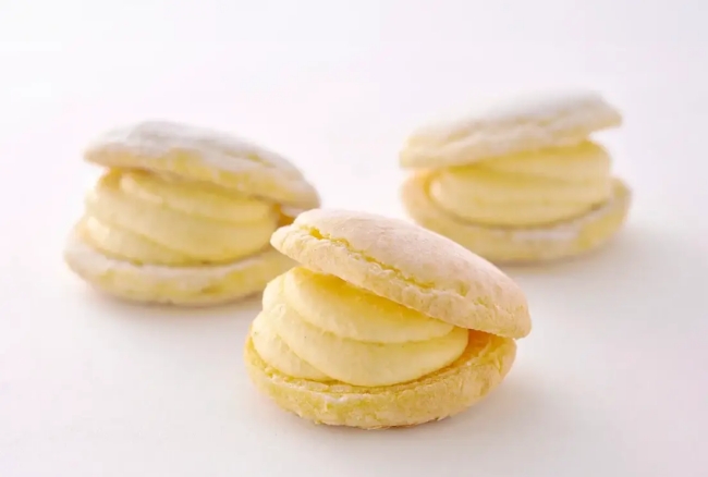 『生バター雪鶴』は、外はサク、中はふわっとした食感が特徴のブッセで、バターの風味を主役に生クリームをホイップしたふんわりクリームをサンド。生仕立てならではの食感が楽しめるのは、ホイップが潰れないその日限りです。
