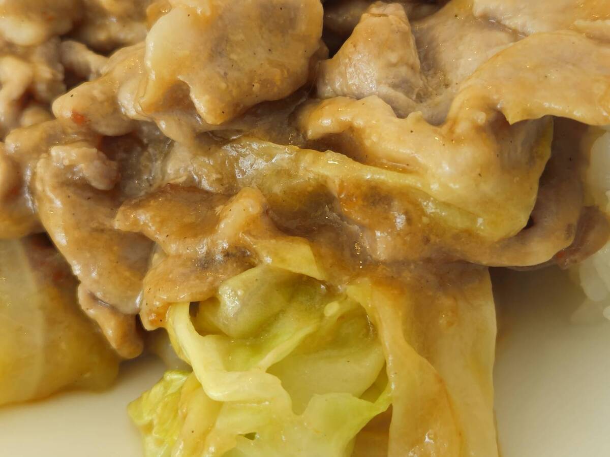 お肉の量も多くて、噛むと柔らかく、味噌の濃厚な味わいが広がります。