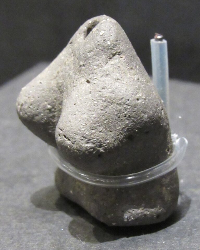 そのうち滋賀県の土偶は、まるでトルソーのような女性の美しい曲線をかたどった造形です。高さは僅か3.1㎝、支えが無くても自立でき、表面は滑らかで、粒子の細かい土を用いて丁寧に作られています。