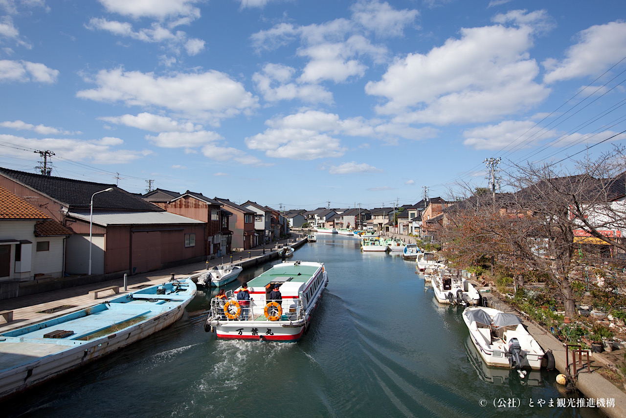 運河の内川の両岸には多くの船が停泊し、岸の間際まで家が迫る様子は、港町で暮らす人々の息づかいが聞こえてきそうな雰囲気です。