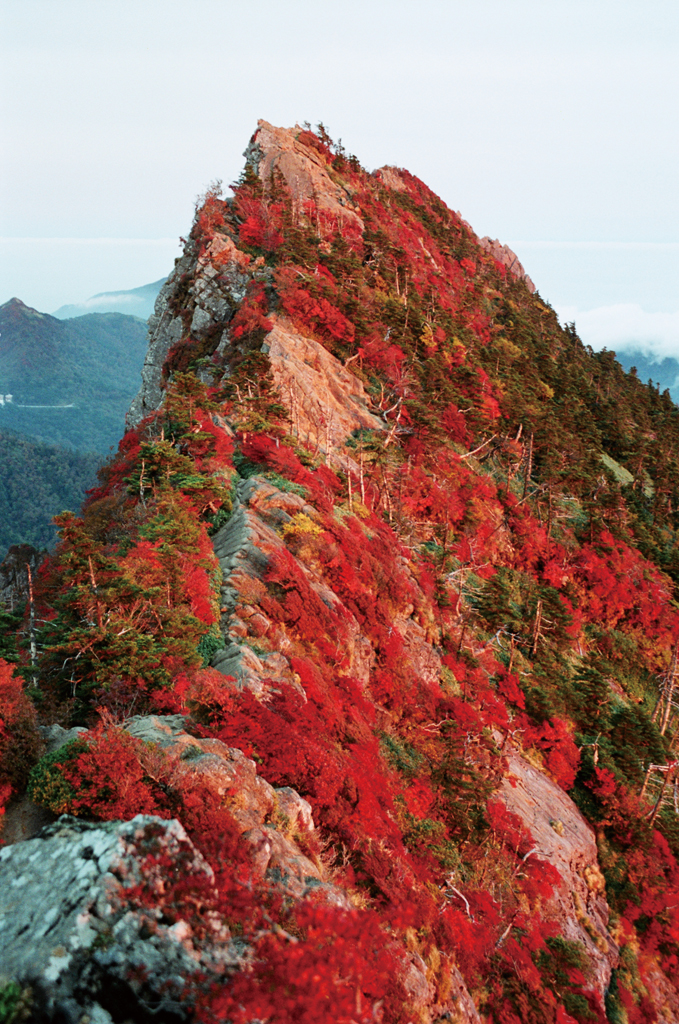 季節を問わず、愛媛の山好きで賑わう西日本最高峰。紅葉見頃は標高によって違い、9月下旬から10月初旬に頂上の紅葉が始まり、徐々に山麓に向け紅葉していく。10月20日頃から末にかけて中腹・成就社近辺が見ごろとなり、11月初旬~中旬にかけて山裾が紅葉していき長く楽しめる。