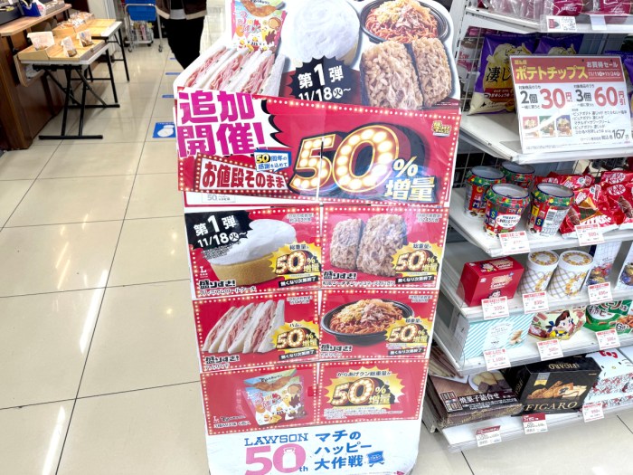 さて、2025年11月18日から2週間にわたって開催される『盛りすぎチャレンジ』は、今回で6回目の開催だという。しかも今回はローソン創業50周年記念にちなんで「50%増量」になっているとのことだ。