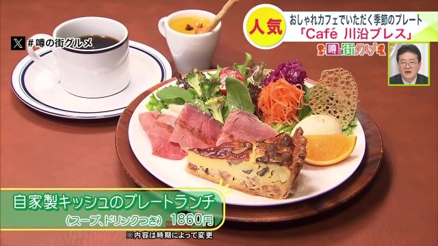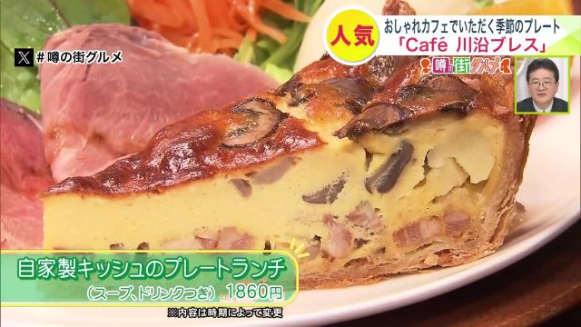 「自家製キッシュのプレートランチ(スープ、ドリンク付き)」(1860円、内容は時期によって変更)を、糸口真子アナウンサーがいただきます。
