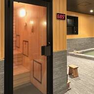 焚火の風景をイメージさせる座席は、セルフロウリュ可能なドライサウナを取り囲むように配置されています。