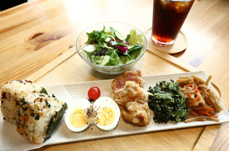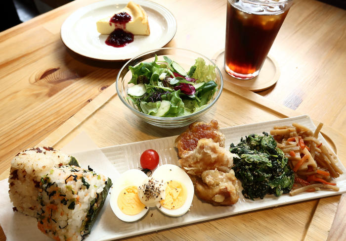 今回いただいたメニューは『おむすびプレート 680円』です。同店の人気メニューで、ボリュームもしっかりあり、全部食べると体が喜ぶ栄養満点の一品です。