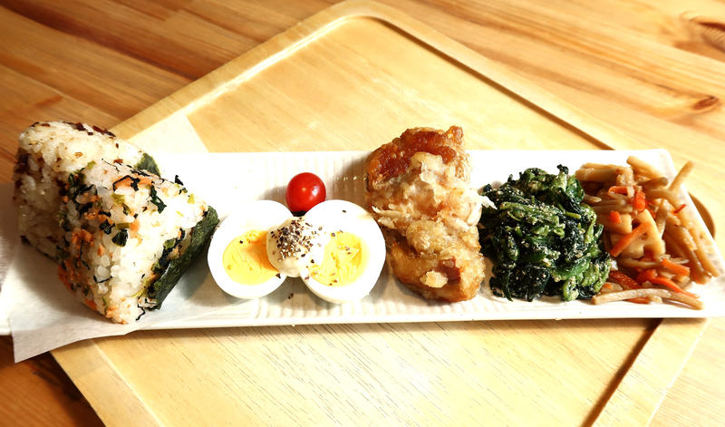 「おむすび」は、鮭&小松菜とごぼうおかかの2種類。しっかり具が混ぜ込まれており、ほおばりたくなるおいしさ。「からあげ」は、しっとりジューシーでうま味が詰まっています。調理の際に、一枚一枚手作業で筋と軟骨を取り除いており、小さい子どもでも食べやすいように工夫されているそう。「きんぴら」にはレンコンが入っておりシャキシャキ食感を楽しめます。