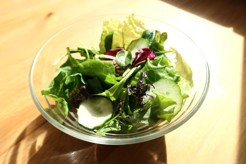 サラダはハニーマスタードのドレッシングがかかっており、やさしい甘みと酸味の融合で、とてもおいしい!