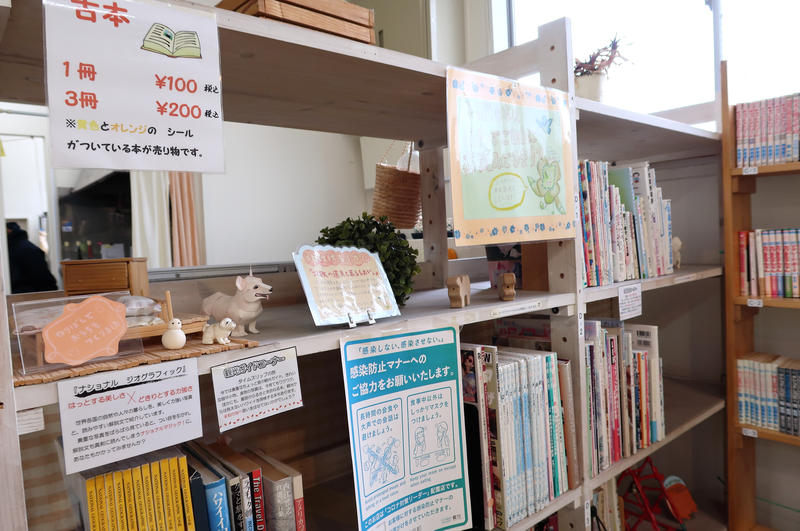 また、黄色とオレンジのシールがついている本は、1冊100円、3冊200円で販売しています。