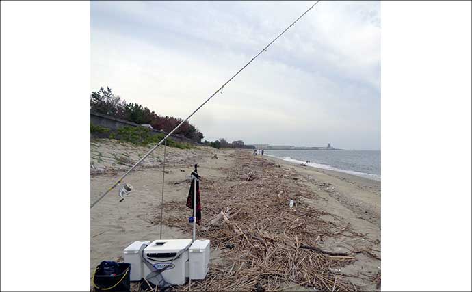 キスの状況は思っていたよりも良い感じだ。小型も交じるが、飽きない程度に釣れるので楽しめそう。群れを成している感じはないので足で探るのが良さそうだ。釣り場がなくならないよう、車の止め方に注意を払い、ゴミの持ち帰りも忘れないように。