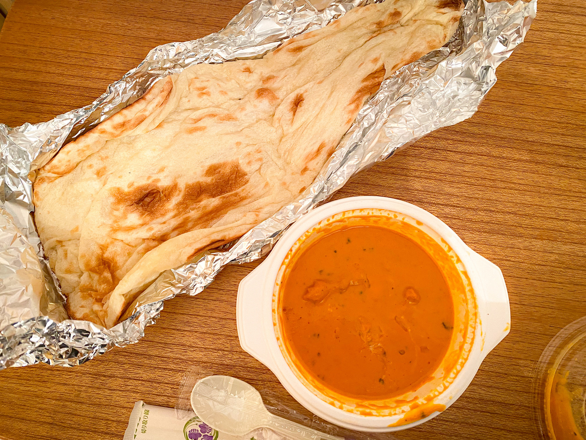 届いた瞬間、袋から焼きたてナンの美味しそうな香りがしていました。